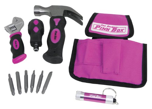 This 11-Piece pink stubby tool set is just one of the many durable, high quality tool options brought to you by The Original Pink Box. Easy grip black rubber is accented with chic pink to make every project fun and stylish. Includes a hammer, adjustable wrench, screwdriver with 6 double-ended interchangeable bits, a keychain flashlight, and a tool belt pouch. The tool pouch fits your belt or The Original Pink Box Tool Belt (PB2BELT), keeping all of your tools handy AND hands-free. Don’t forget to check out our other The Original Pink Box tools, such as our 12-Inch Hammer (PB12HM), 5-Piece Pliers Set (PB5PL), 6-Piece Screwdriver Set (PB6SD), or get a 30-piece PINK tool set in a fun, handy 12-Inch tool bag (PB30TBK). Weight: 1.5-Pound.
